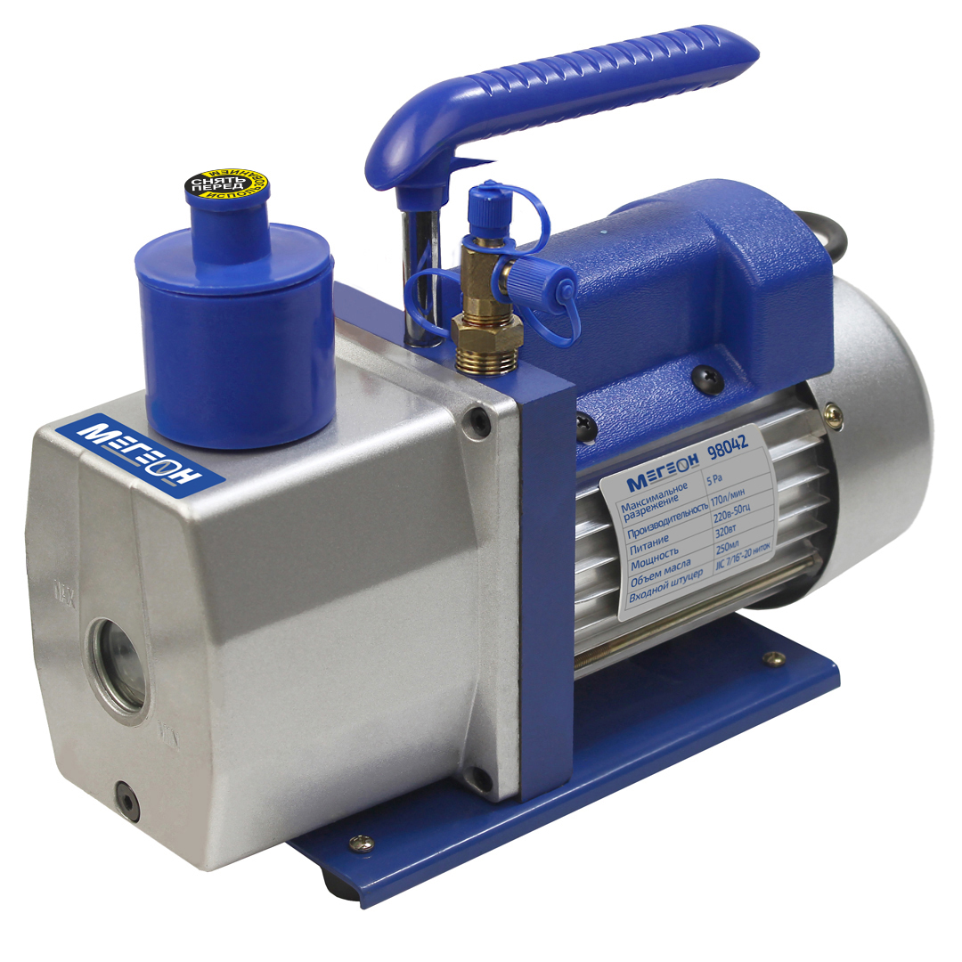 МЕГЕОН 98042 – это техническое средство представляющее собой электрический вакуумный двухступенчатый масляный насос, сочетающий в себе небольшие размеры, вес, высокую производительность и беспрецедентную надёжность. Удобная ручка для переноски, низкий уровень шума и невысокое энергопотребление делают его весьма привлекательным приобретением. Исключительные эксплуатационные характеристики достигаются благодаря новейшим разработкам, высококачественным материалам и изготовлению деталей на прецизионных станках. Он найдёт широкое применение при монтаже, наладке и ремонте бытового и торгового холодильного оборудования, домашних и автомобильных кондиционеров, в исследовательской деятельности и промышленном использовании, где необходимо откачать воздух до абсолютного значения 0,3 паскаля.